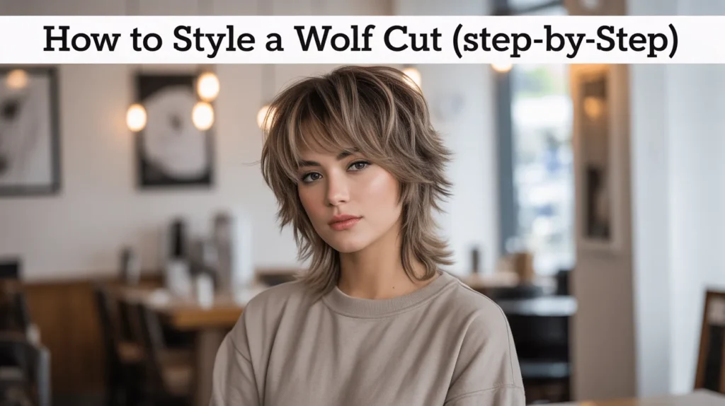 The wolf cut is a modern hairstyle that combines the volume and layers of a shag with the shape and boldness of a mullet. It has shorter, fuller layers on top and longer, softer layers toward the ends — giving your hair a naturally tousled, “lived-in” texture.